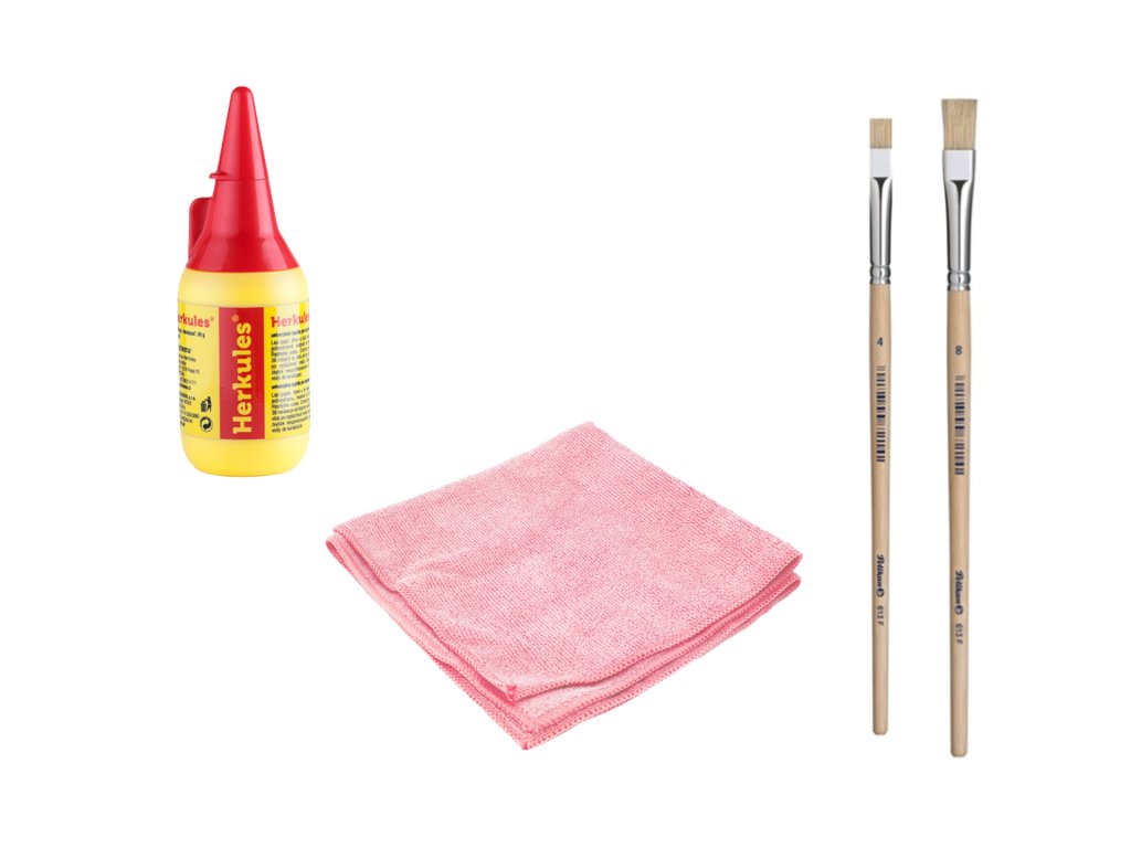 V této praktické sadě najdete vše potřebné pro lepení papírových skládaček. Sada obsahuje také lepidlo, které vystačí vždy na jednu skládačku. Pokud byste chtěli dokoupit samostatně lepidlo, naleznete ho zde.