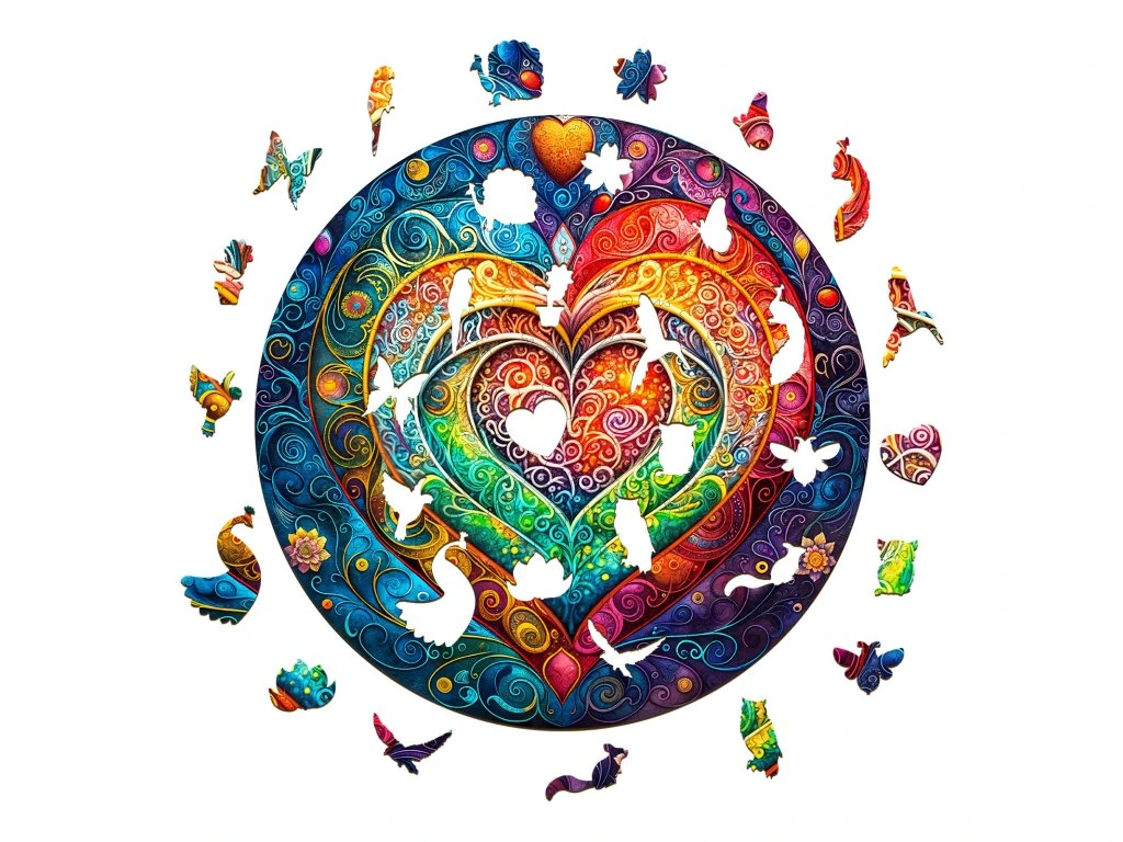 Pestrobarevná dřevěná skládačka je k dostání v několika velikostech. Se zvyšující se velikostí roste i počet puzzle dílků, a tím se zvyšuje obtížnost a časová náročnost složení díla. Balení obsahuje dřevěnou krabičku, stojánek na umístění předlohy pro lepší orientaci ve skládačce a jednotlivé puzzle dílky.